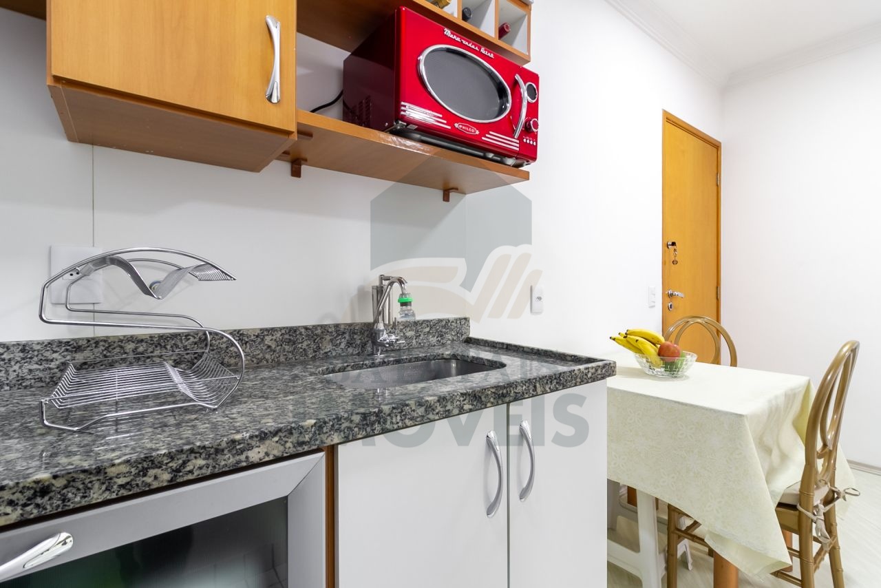 Studio muito bem localizado no 16º (último andar), super bem ventilado com varanda, possui vaga na garagem demarcada e de fácil acesso, cozinha com móveis planejados de primeira linha, mobiliado com cooktop, geladeira, sofá e base para cama box. Edifício dispõe de lavanderia para moradores, sauna seca, piscina, academia e área de churrasco.