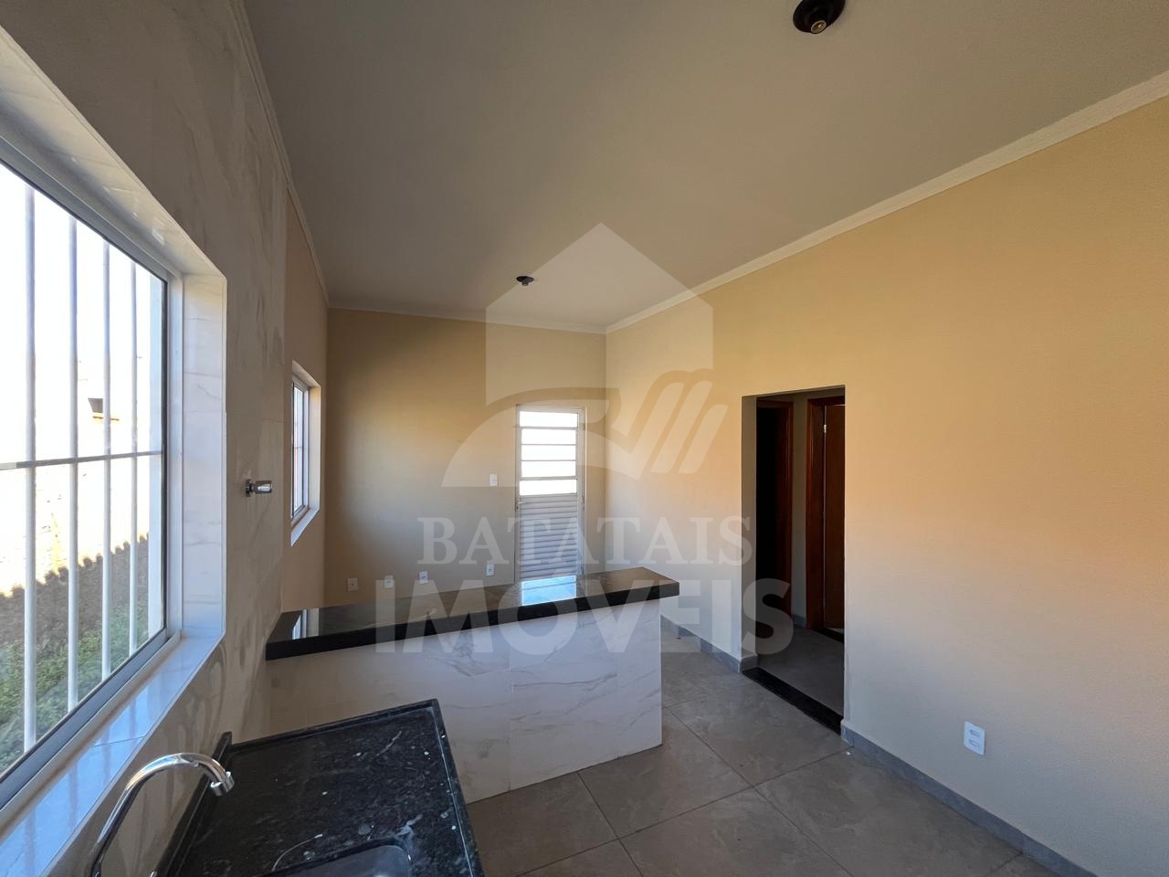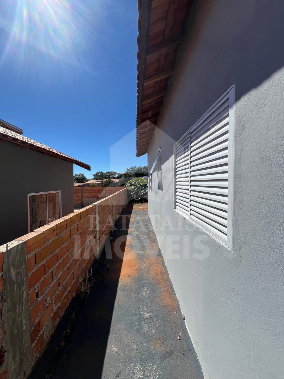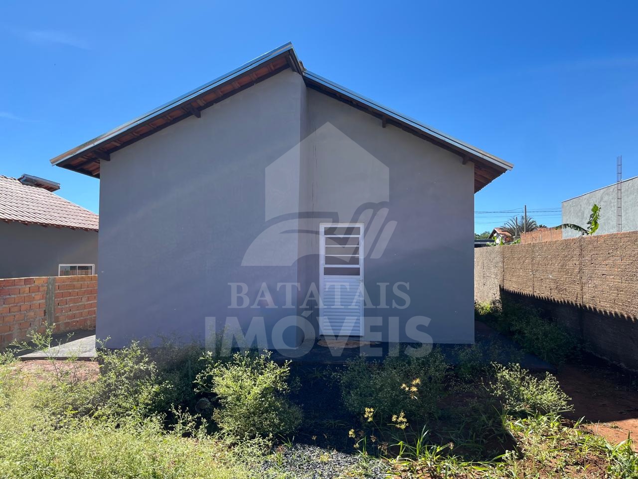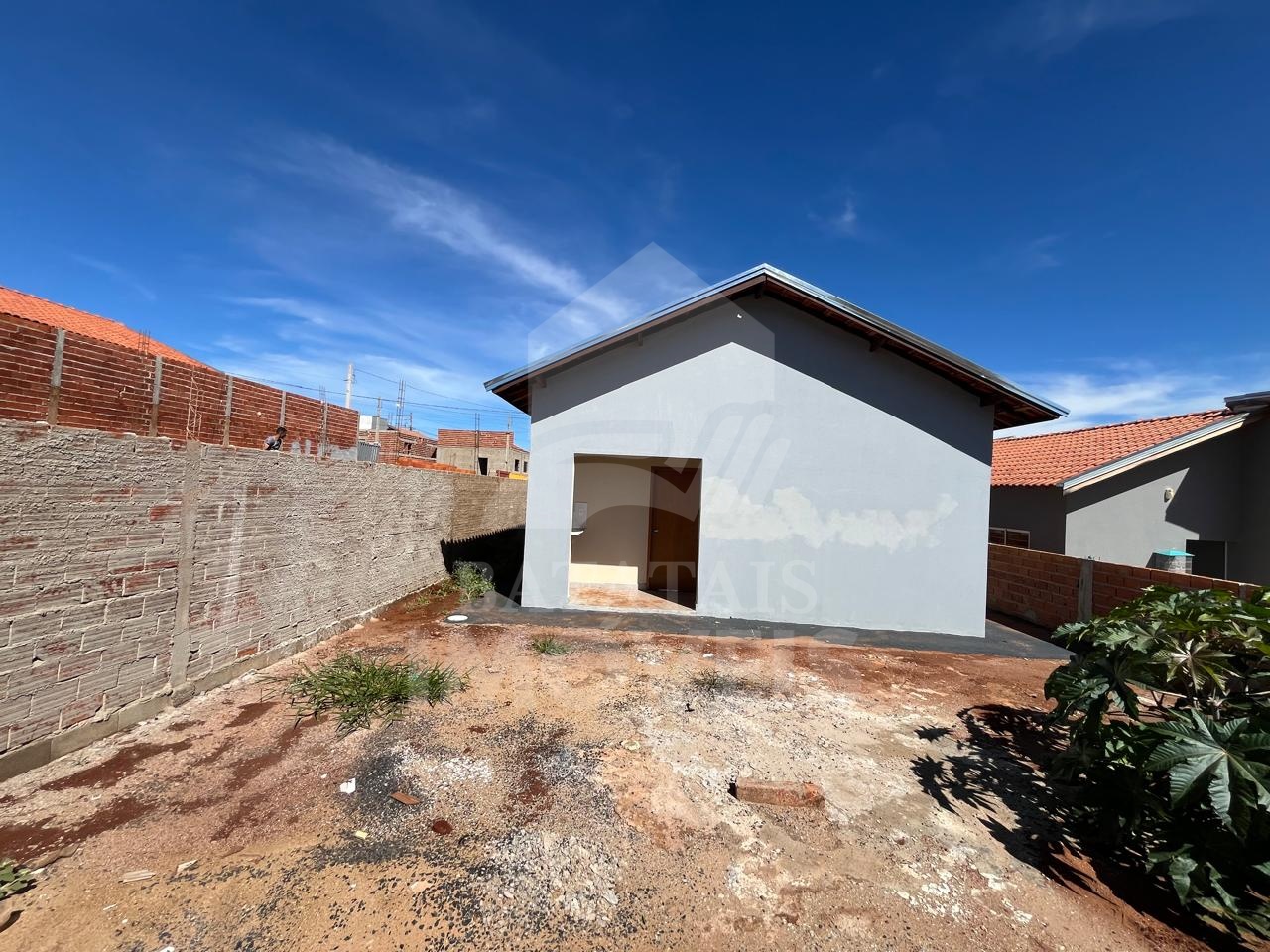 Casa com 02 dormitórios, sala e cozinha integradas, área de serviço, quintal parcialmente murado, lajotada, piso frio.